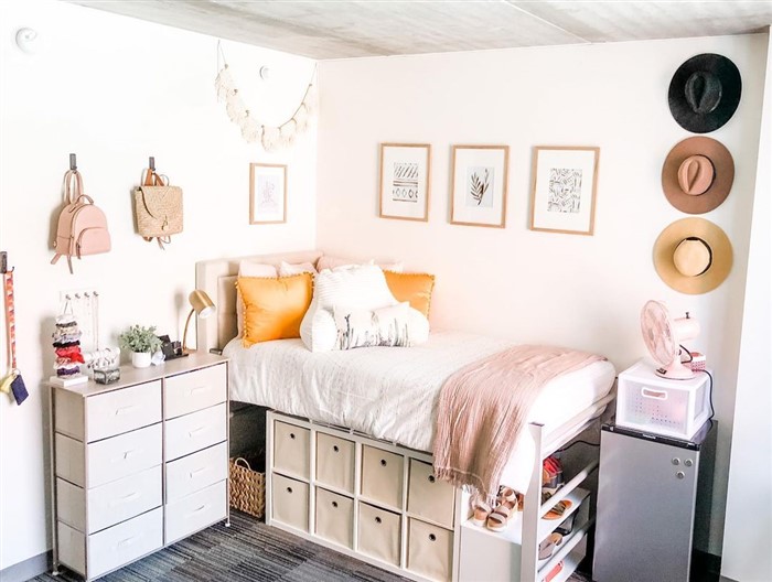 Having limited areas in dorm rooms should not prevent your creativity. It is possible to make your room look cool with simple touches on your walls. You can cover your walls with wallpapers that suit your taste. Alternatively, you can choose to hang the tapestries that you will buy from outside. Apart from that, you can decorate the walls with various frames, paintings, accessories such as hats or posters of your favorite artists and movies.